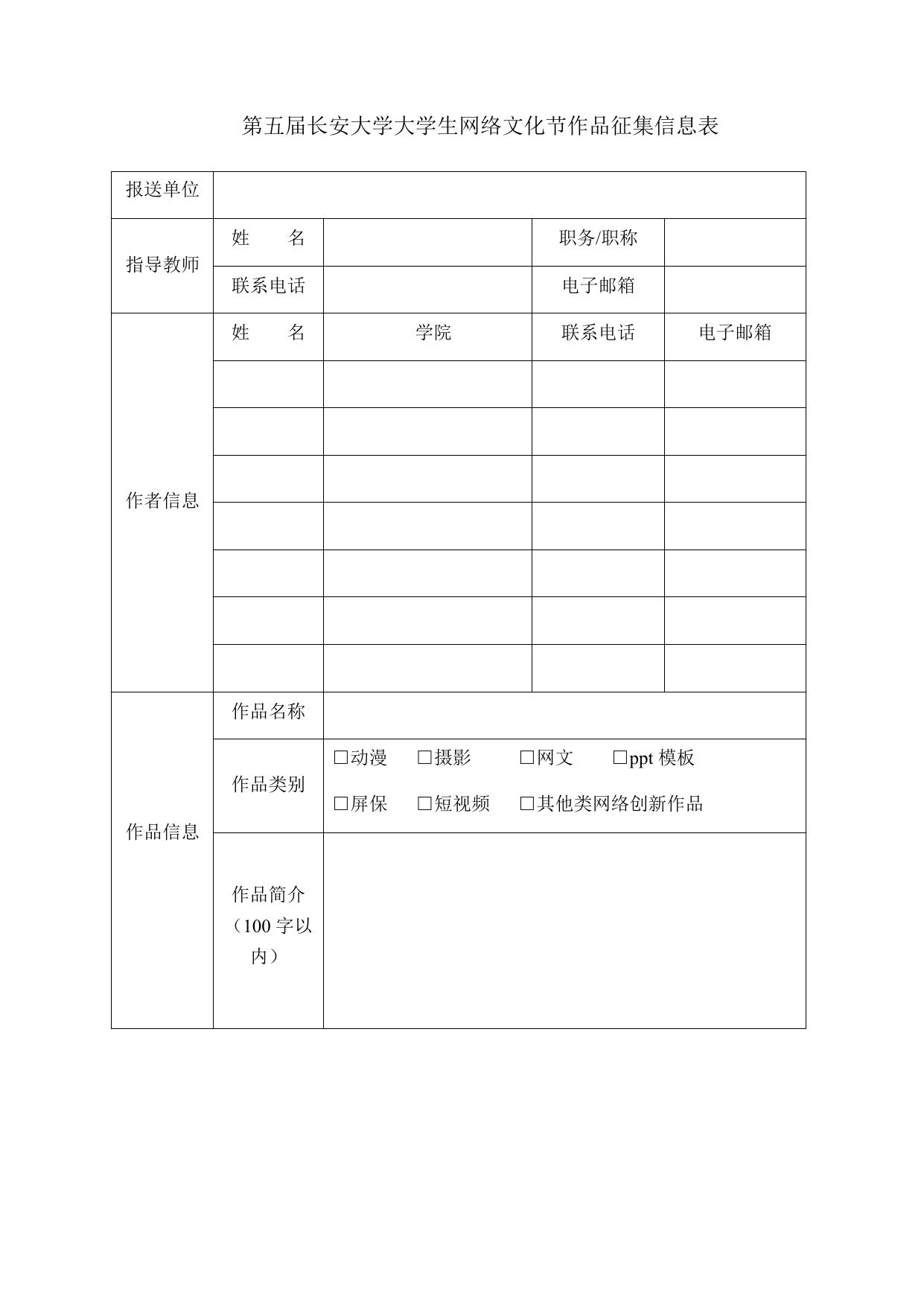 第五届长安大学大学生网络文化节作品征集信息表.docx