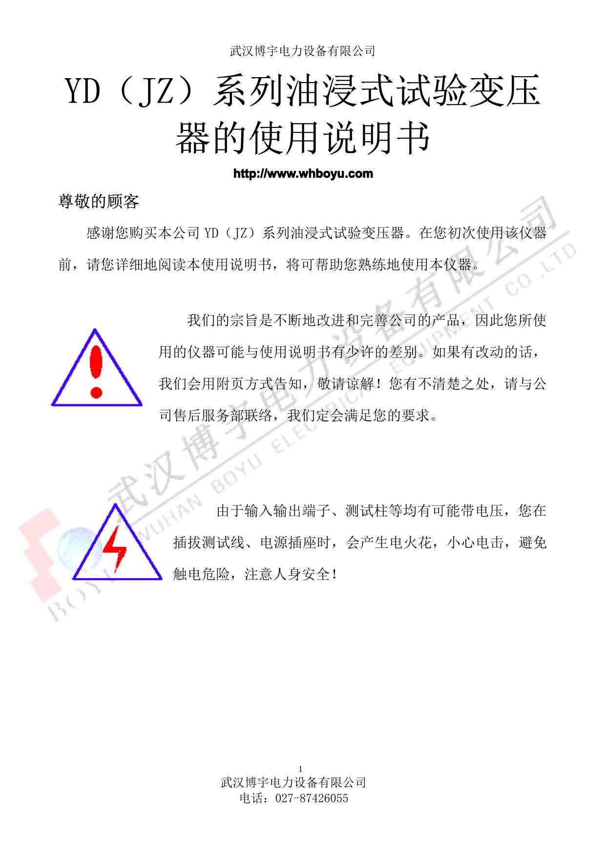 博宇YD(JZ)100300油浸式试验变压器的使用说明书