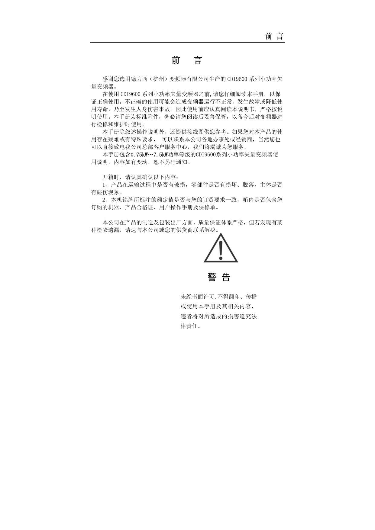 德力西CDI9600-G2R2T4小功率矢量变频器说明书