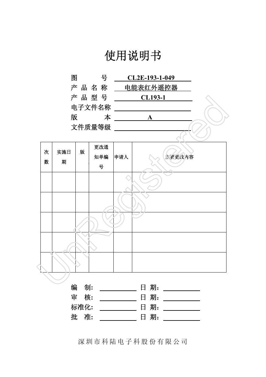科陆CL193-1电能表红外遥控器使用说明书