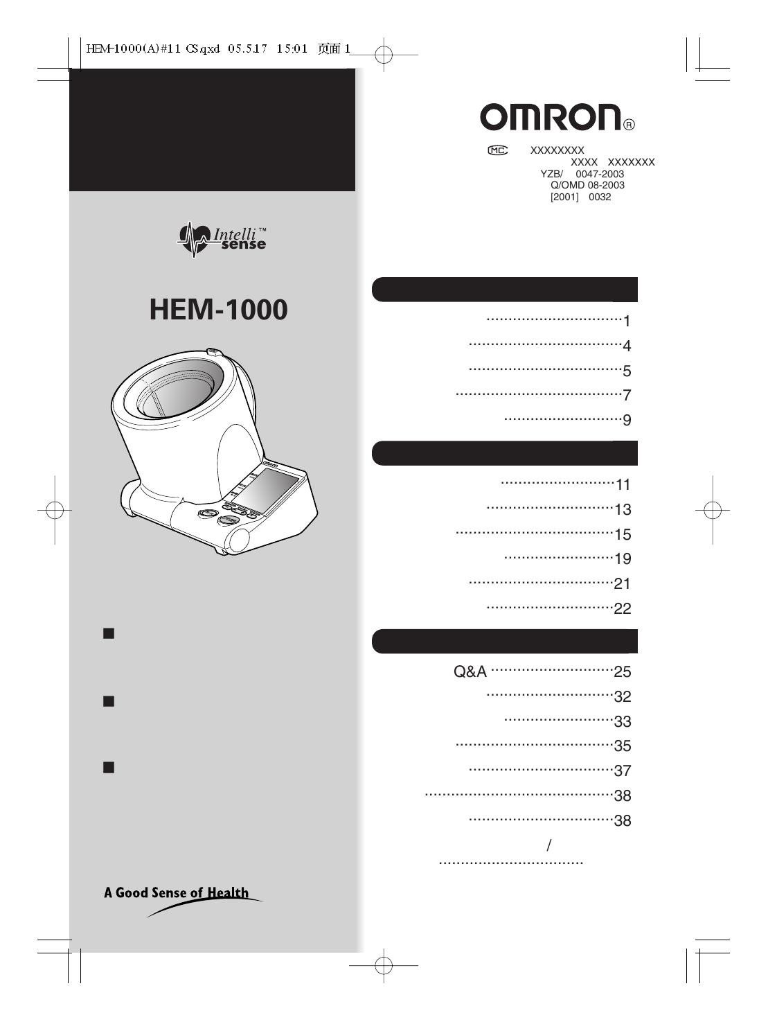 欧姆龙HEM-1000电子血压计使用说明书