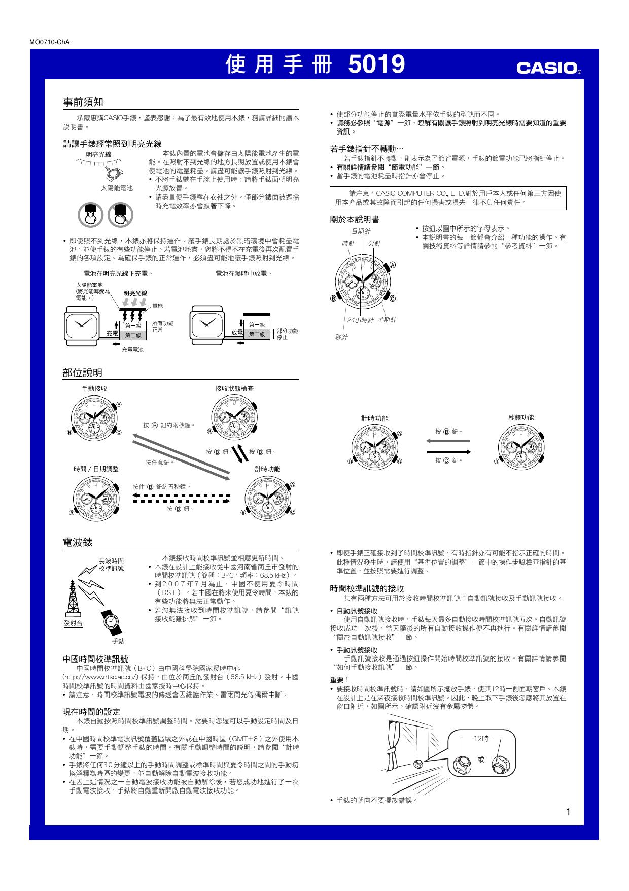 卡西欧 机芯型号:5019手表说明书