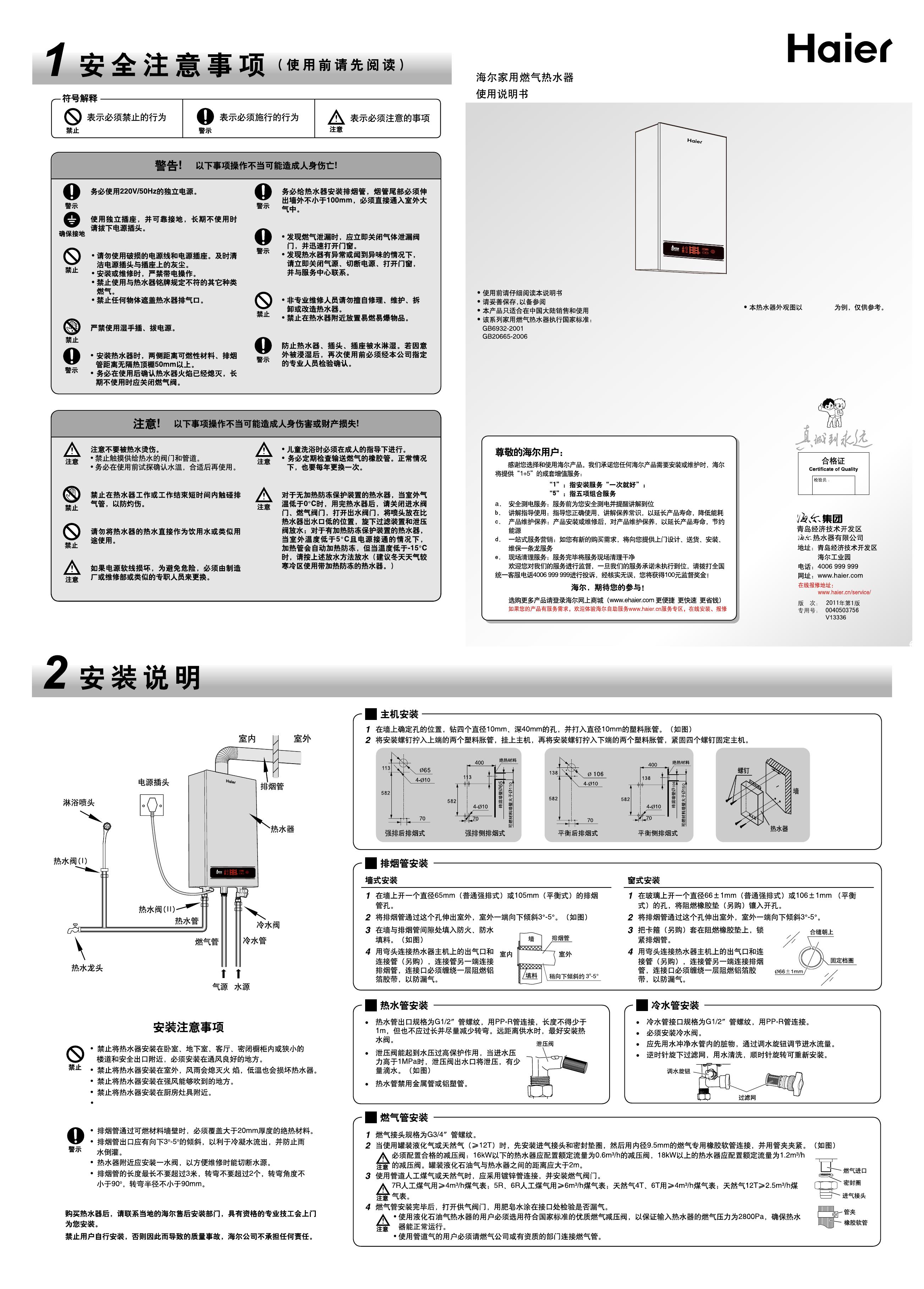 海尔 圣火之心10升燃气热水器JSQ20-E2(12T) 说明书