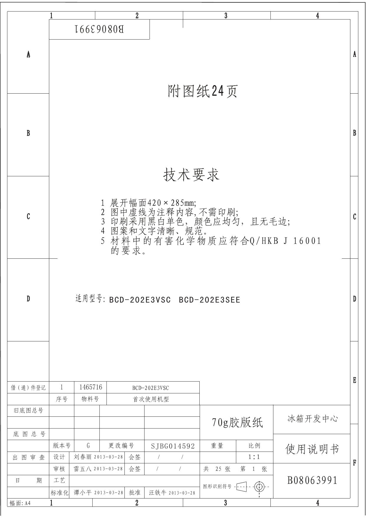惠而浦BCD-202E3SEE电冰箱使用说明书