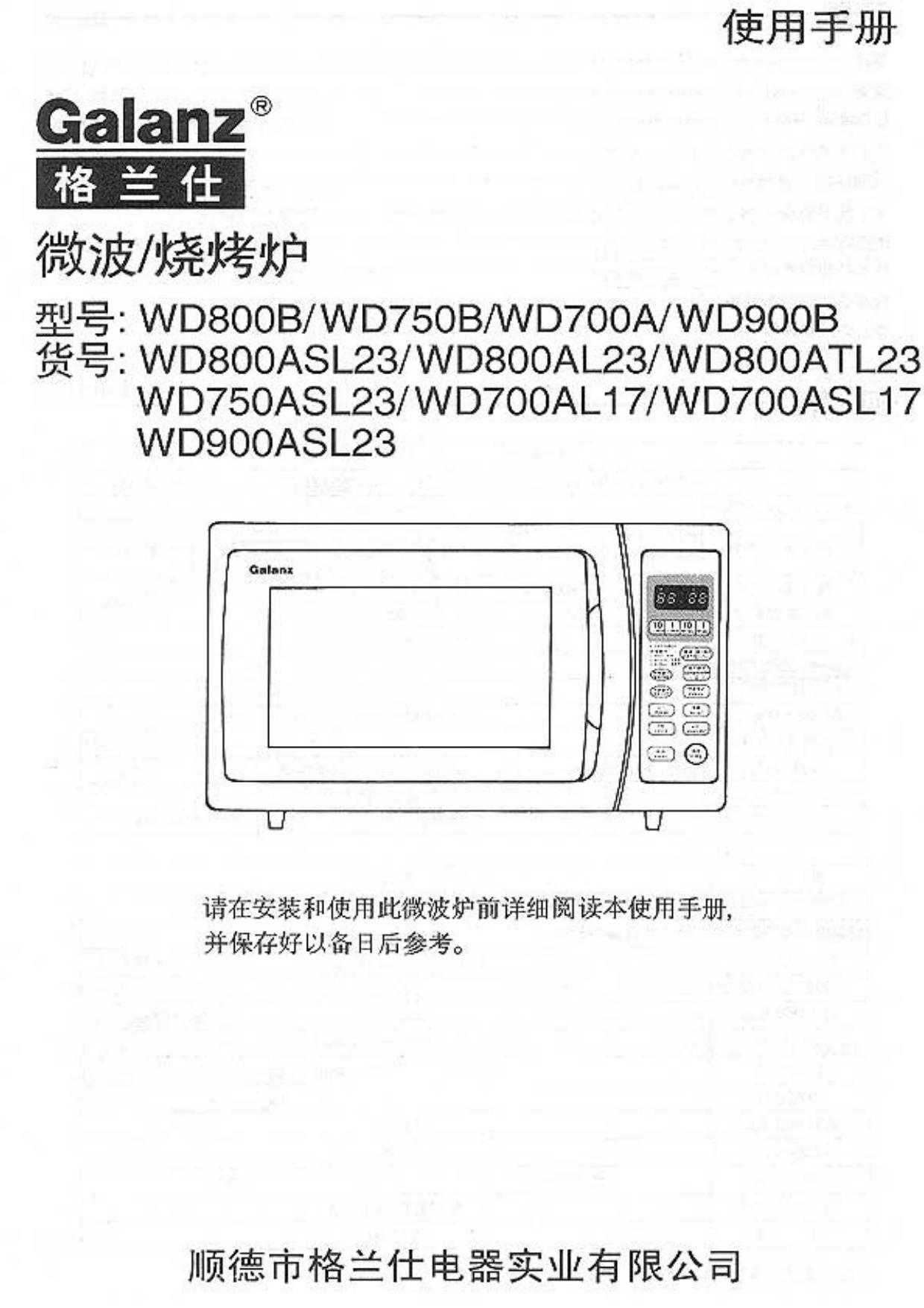 格兰仕 WD750ASL23微波炉 说明书 免费版