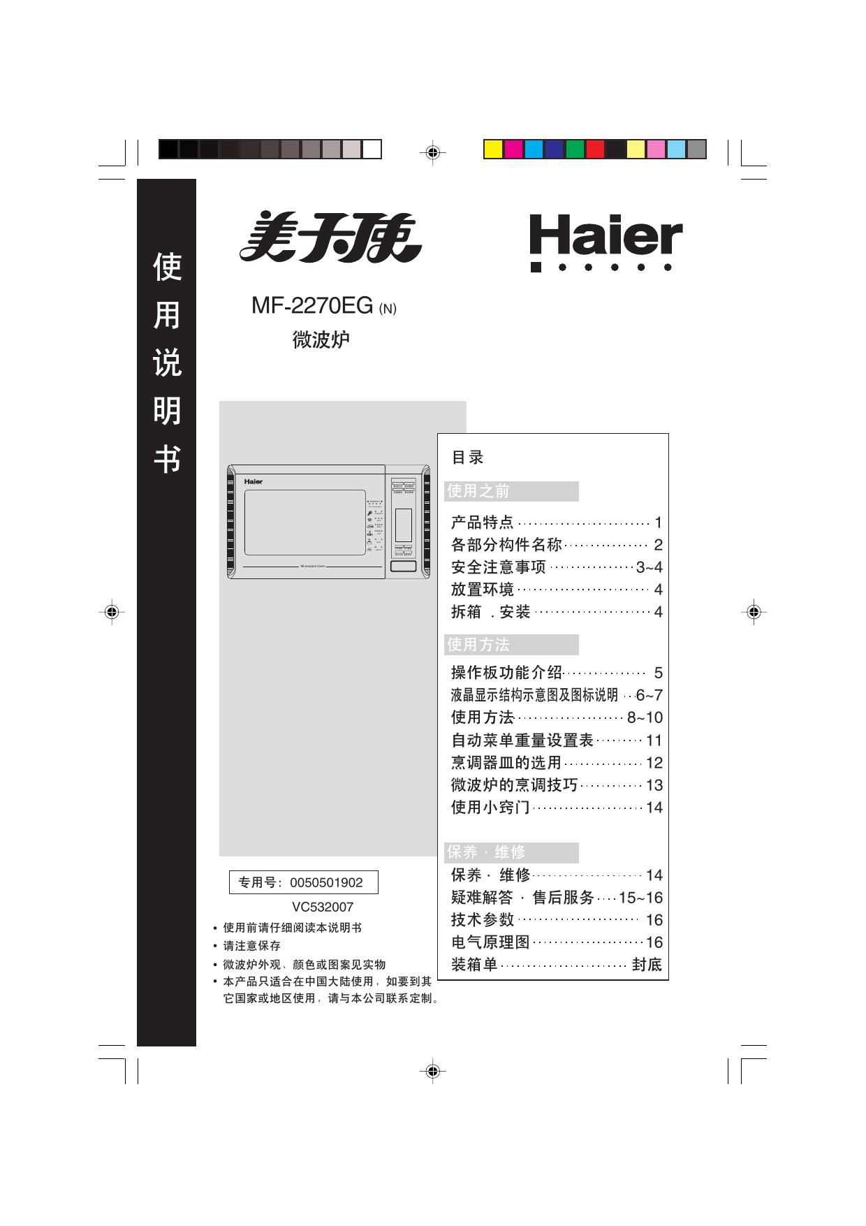 海尔 MF-2270EG(VC)微波炉 使用说明书