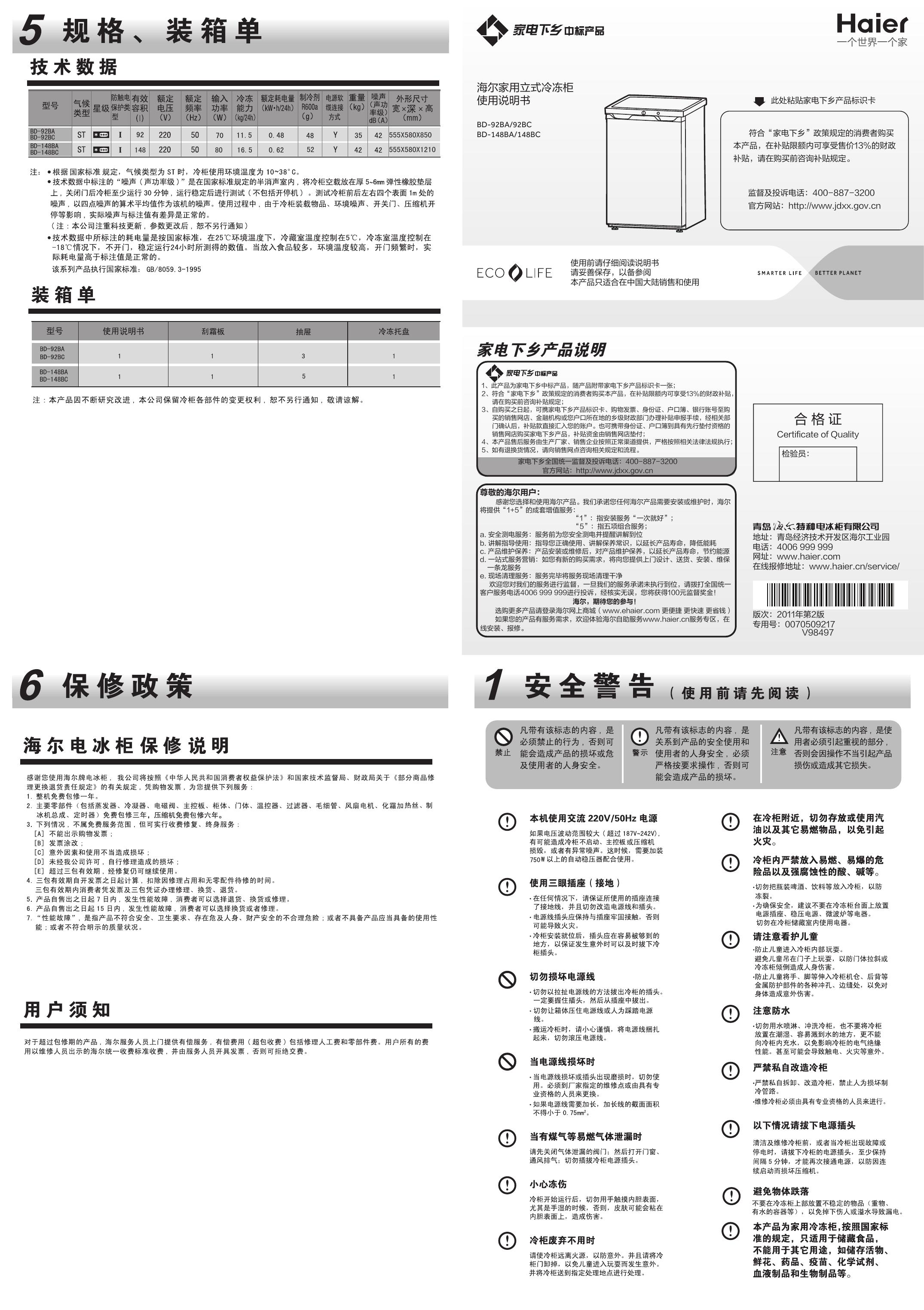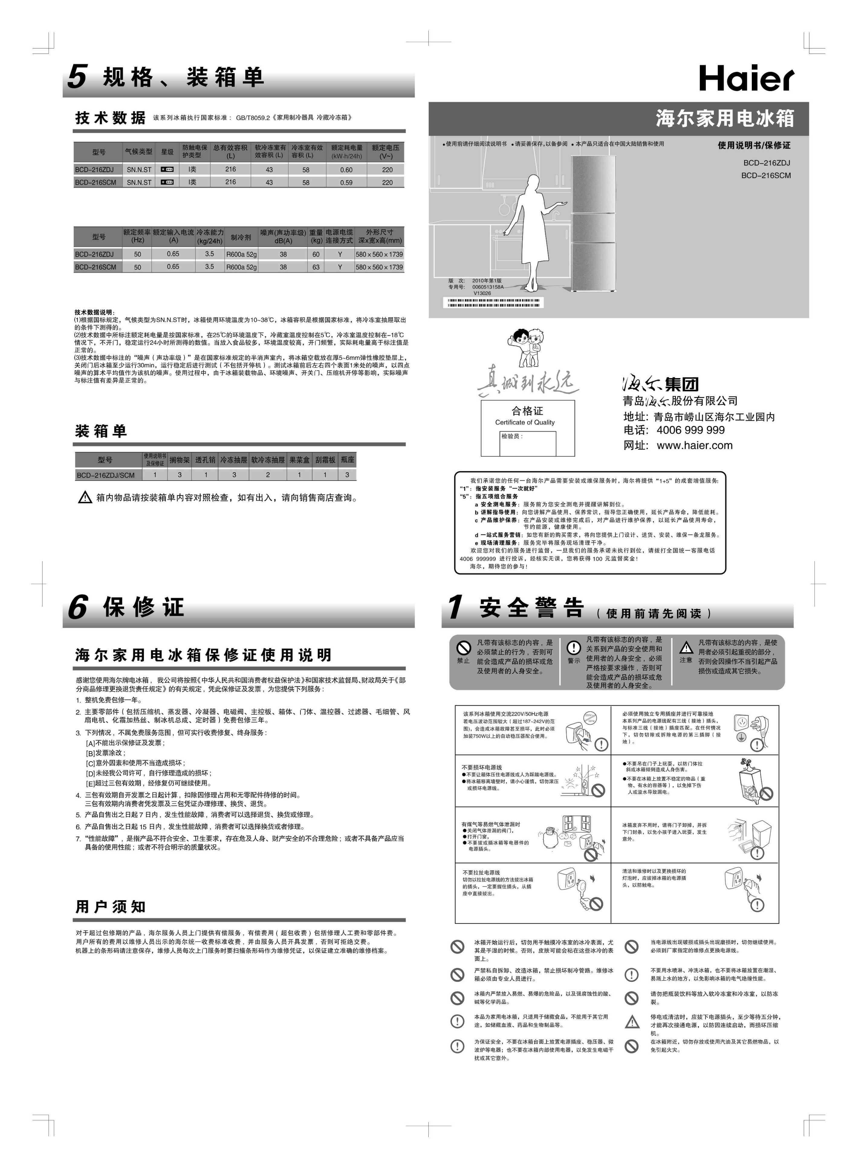 海尔 BCD-216ZDJ电冰箱 使用说明书