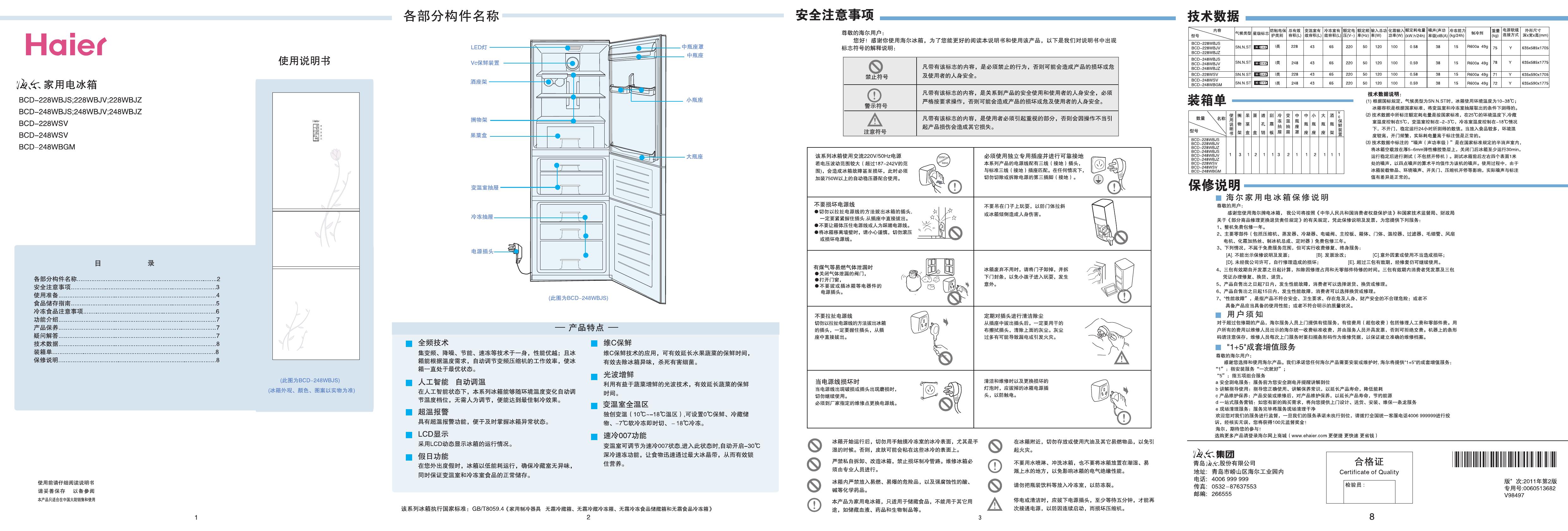 海尔三门216升软冷冻冰箱 BCD-216SDX说明书