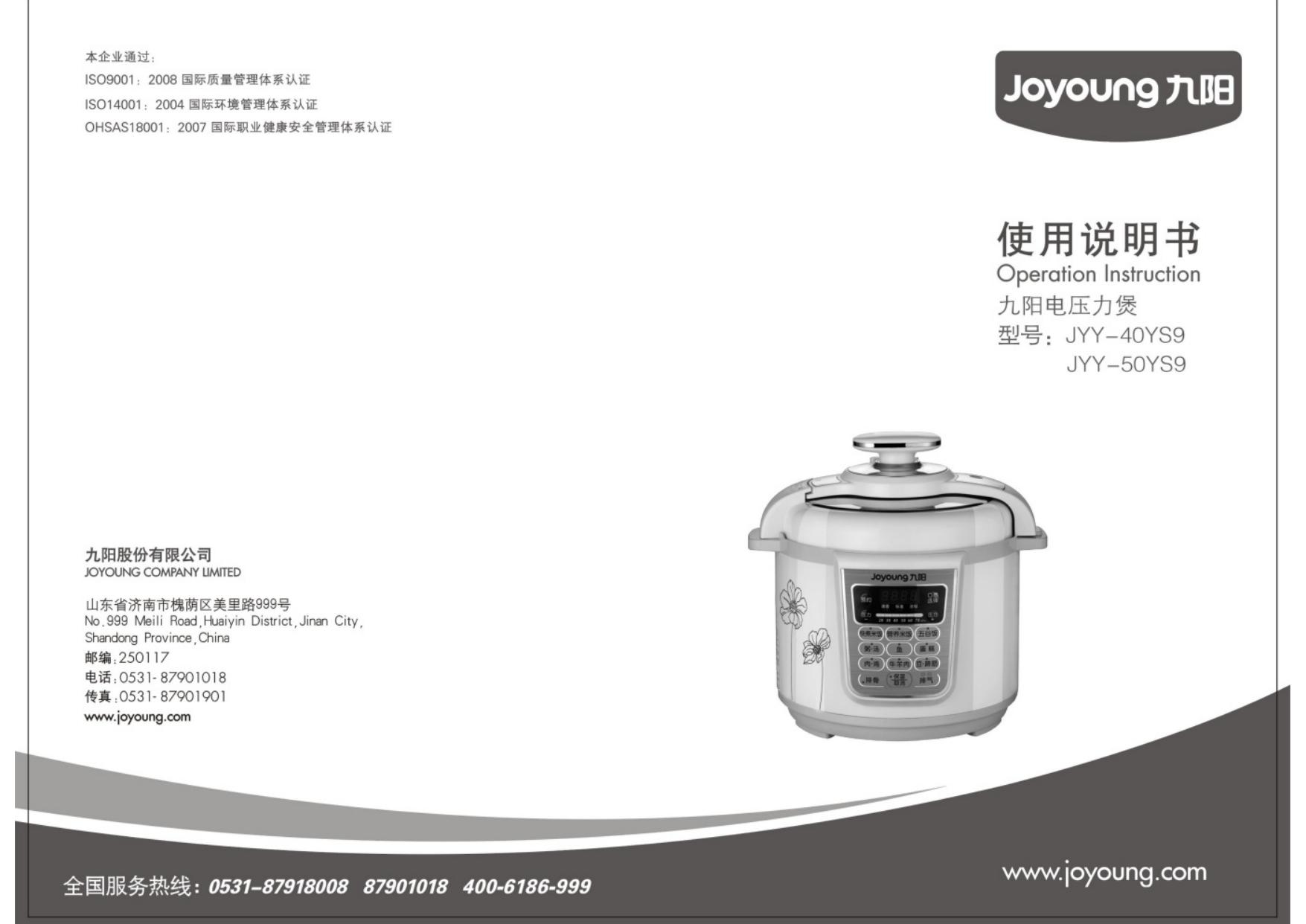 九阳 JYY-50YS9型电压力锅 使用说明书