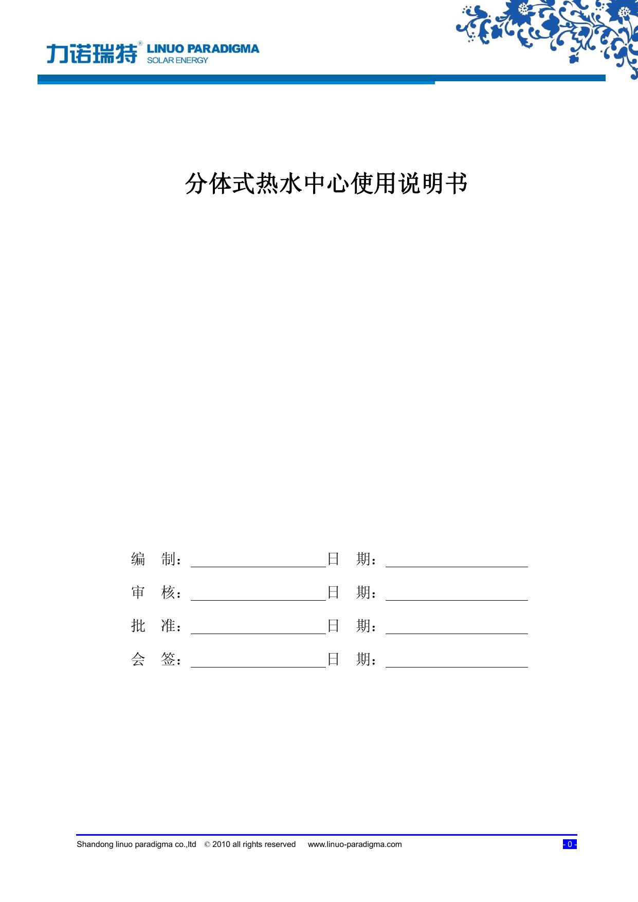 力诺瑞特B-J-F-2-20040.8-Q分体式太阳能热水器使用说明书