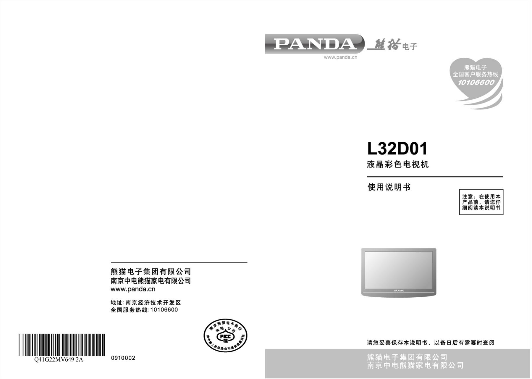 熊猫电子 L32D01液晶彩色电视机 说明书