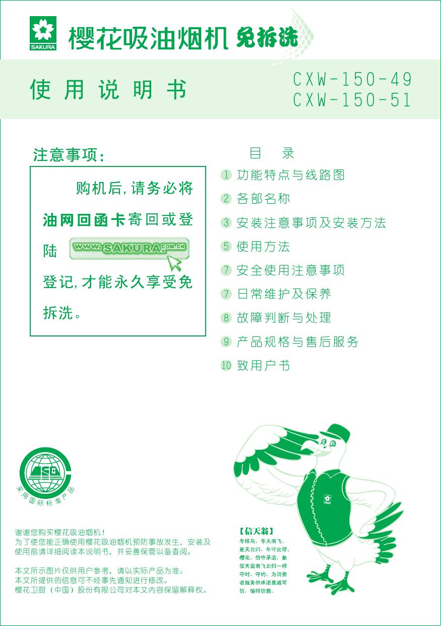樱花SCR-3679G型中式吸油烟机使用说明书