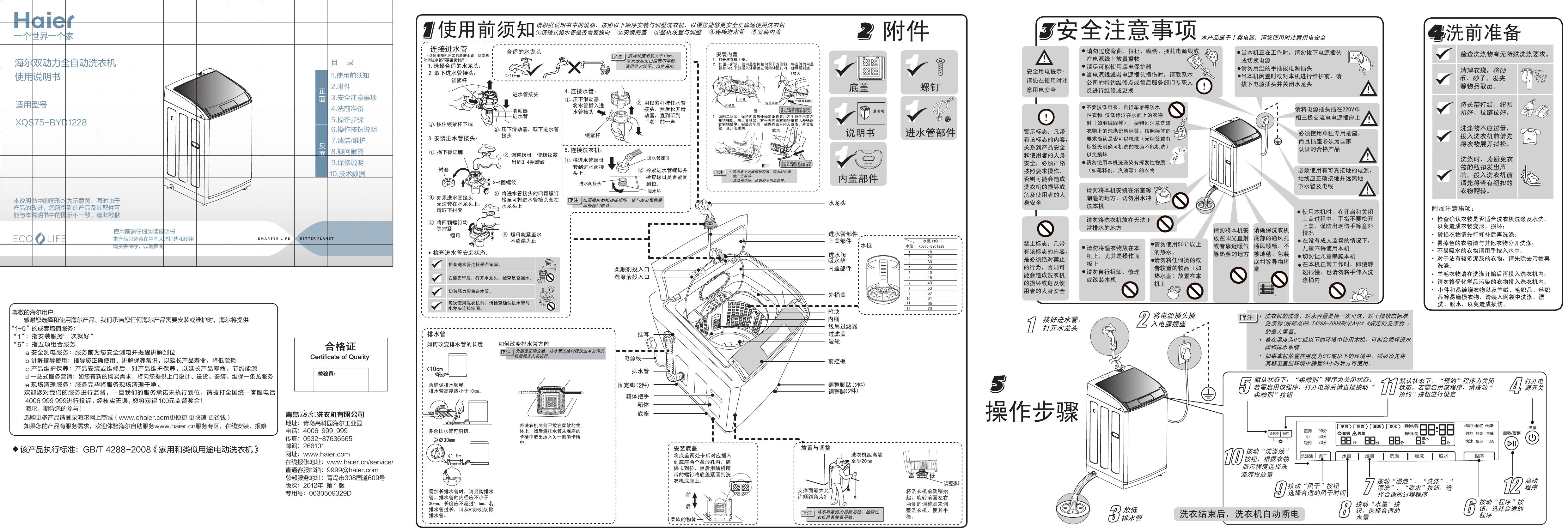 海尔XQG70-1000J滚筒洗衣机使用说明书
