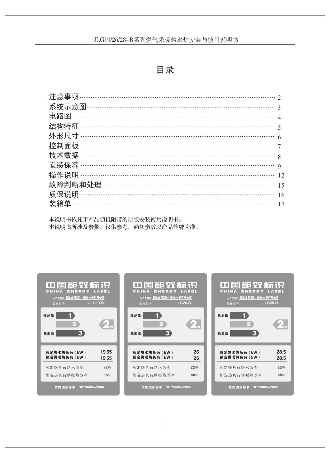 史密斯JLG26-B燃气采暖热水炉使用说明书