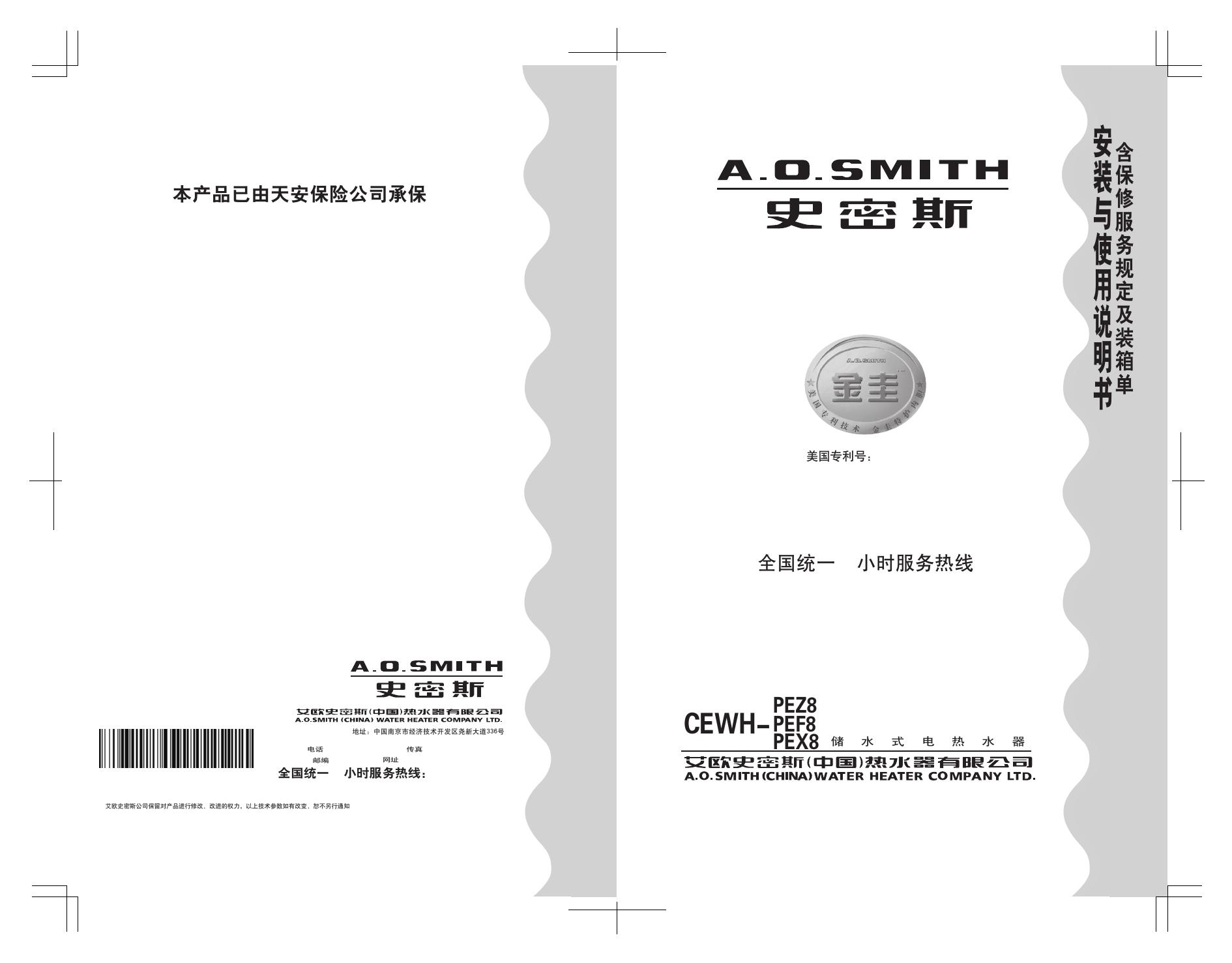 史密斯CEWH-60PEZ8B电热水器安装使用说明书