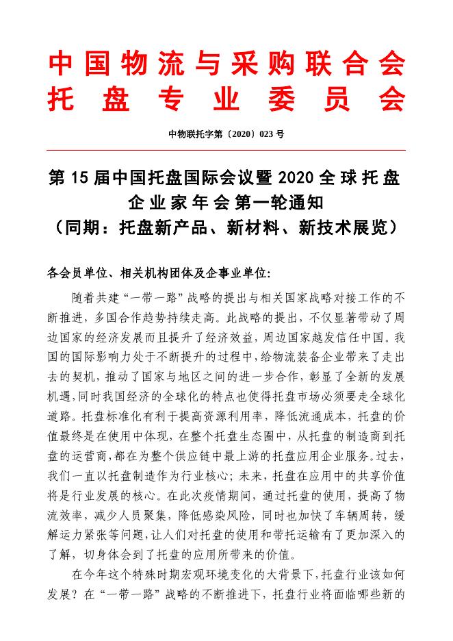 【2020】第15届中国托盘国际会议暨2020全球托盘企业家年会第一轮通知.pdf