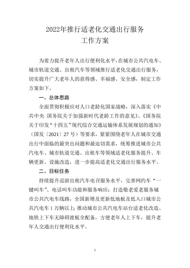 2022年推行适老化交通出行服务等5件更贴近民生实事工作方案.doc
