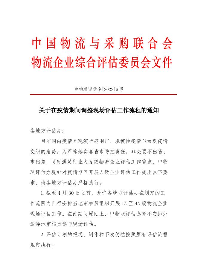 关于在疫情期间调整现场评估工作流程的通知.pdf