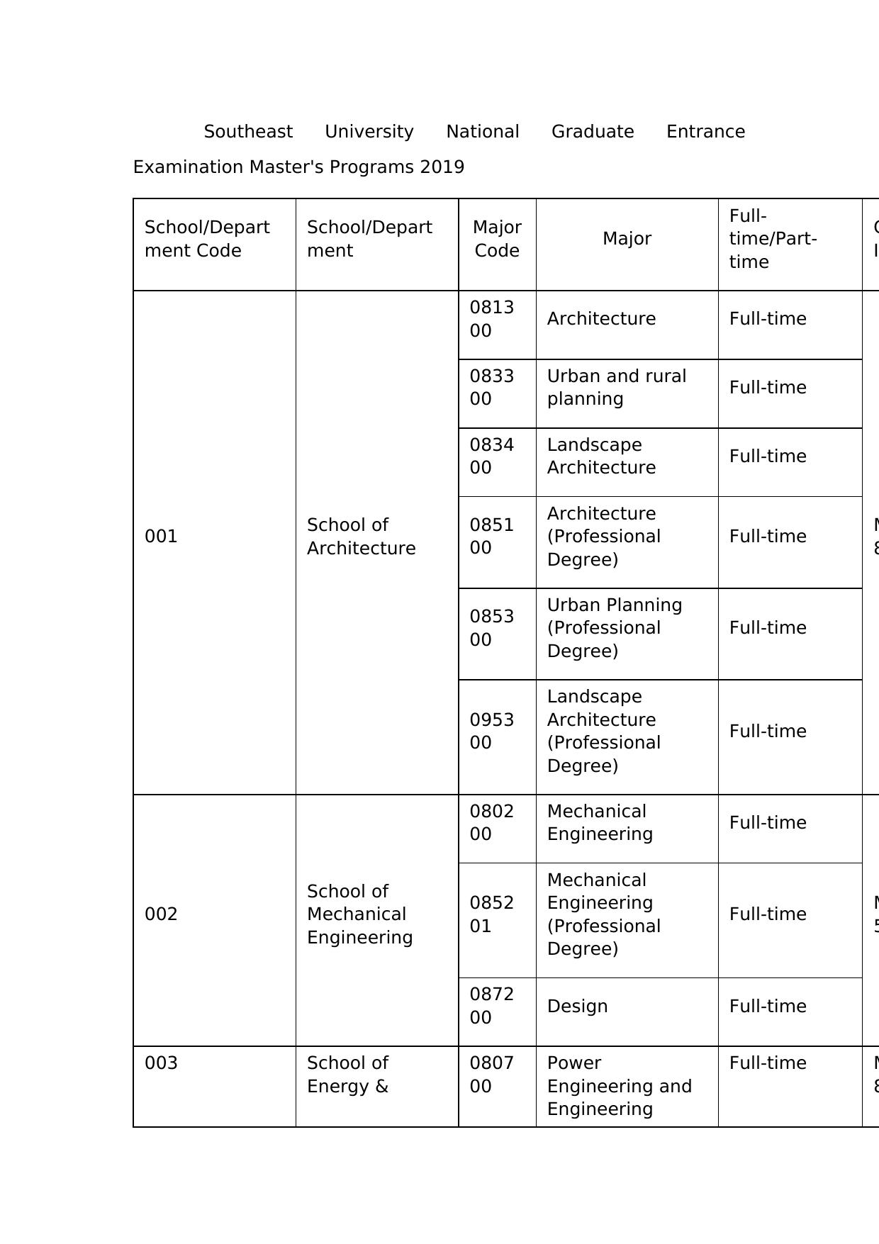 Southeast University National Graduate Entrance Examination Masters Programs 2019