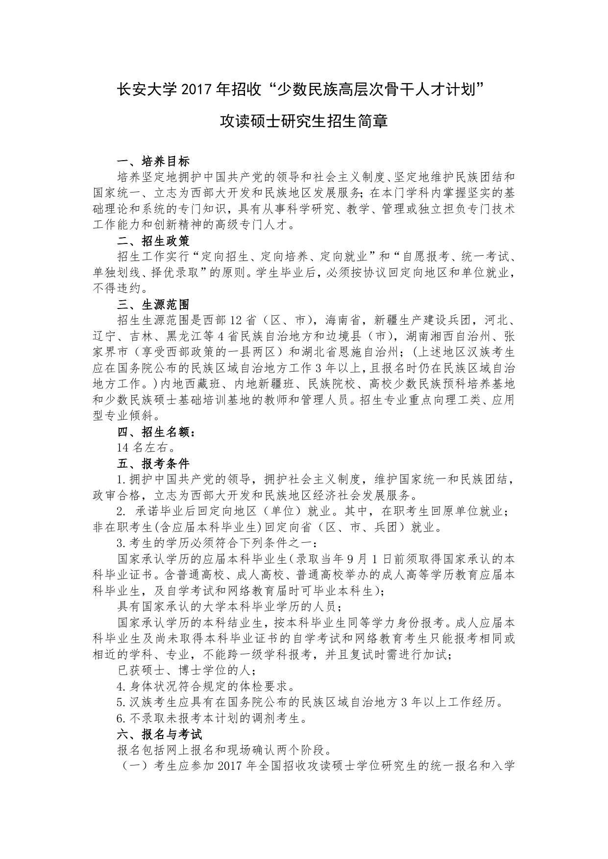 长安大学公路学院长安大学2017年少数民族高层次骨干人才计划攻读硕士学位招生简章.doc