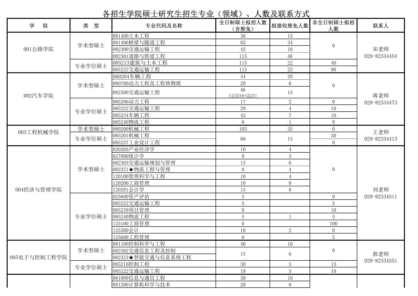 长安大学公路学院2017硕士研究生招生分学院招生人数、领域、联系方式.pdf