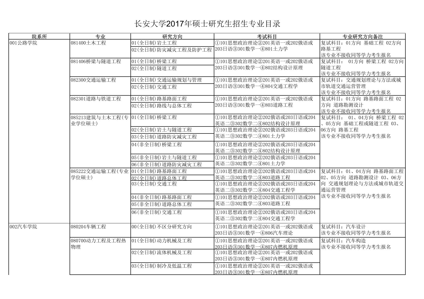 长安大学公路学院长安大学2017年硕士研究生招生专业目录.pdf