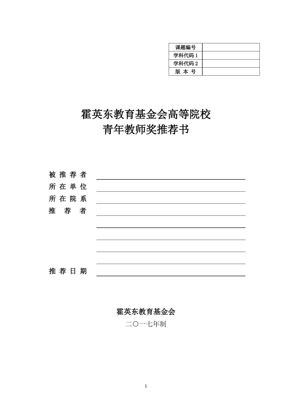 长安大学公路学院附件3 霍英东教育基金会高等院校青年教师奖推荐书.doc