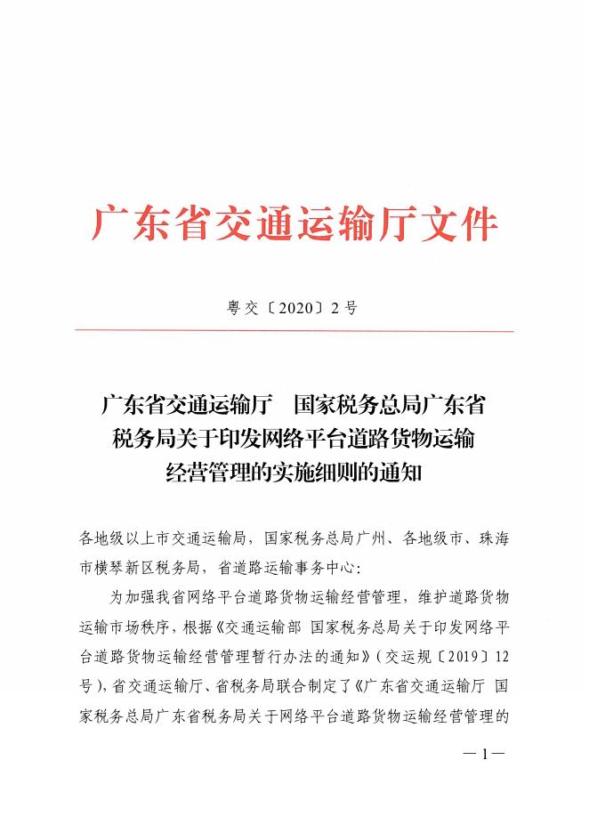 广东省交通运输厅 国家税务总局广东省税务局关于印发网络平台道路货物运输经营管理的实施细则的通知.pdf