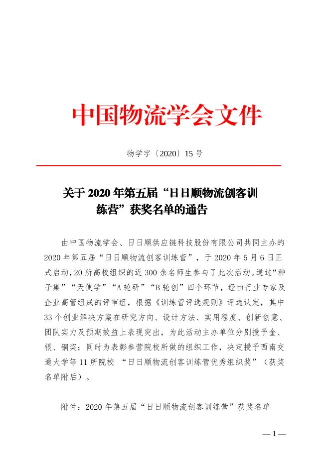 物学字〔2020〕15号:关于2020年第五届“日日顺物流创客训练营”获奖名单的通告.pdf