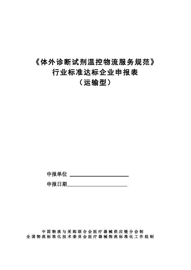 附件1:《体外诊断试剂温控物流服务规范》行业标准达标企业(运输型) 申报表.doc