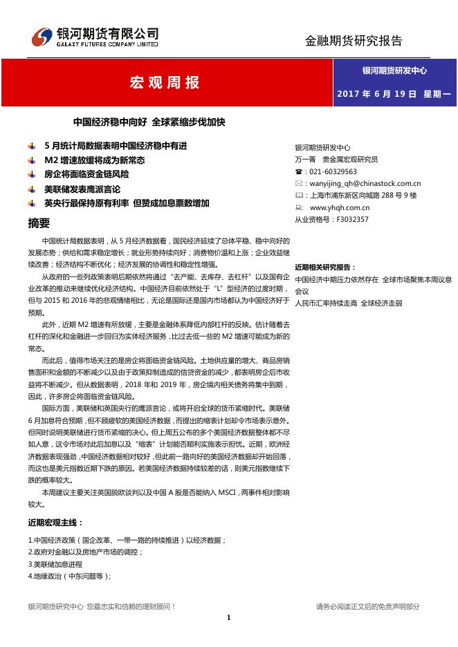 宏观周报20170605 - 宏观早报,宏观经济日报-银河期货.pdf