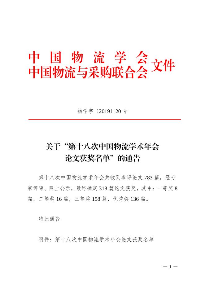 关于“第十八次中国物流学术年会论文获奖名单”的通告.pdf