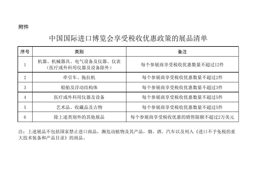 中国国际进口博览会享受税收优惠政策的展品清单.xls