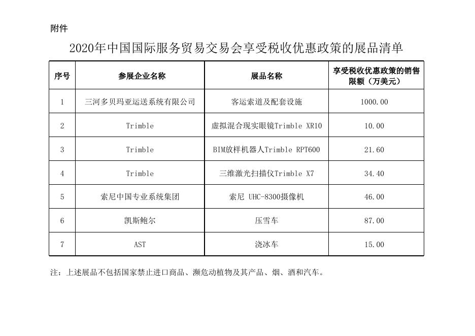 2020年中国国际服务贸易交易会享受税收优惠政策的展品清单.xls