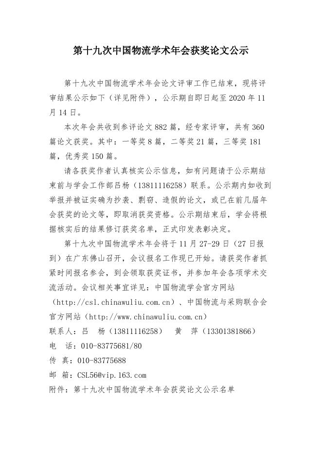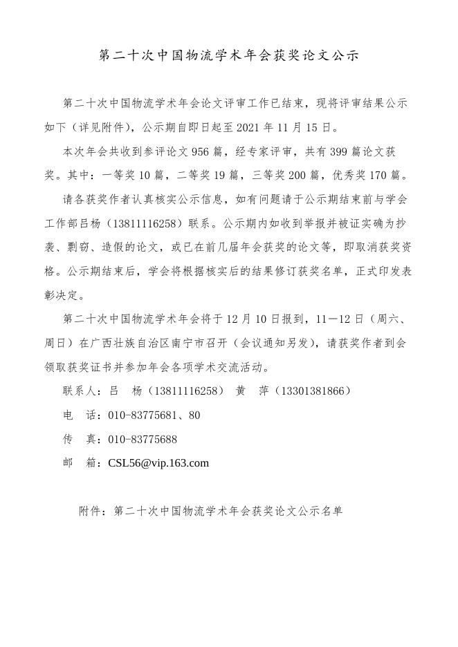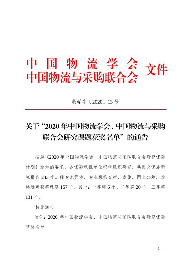 关于“2020年中国物流学会、中国物流与采购联合会研究课题获奖名单”的通告.pdf
