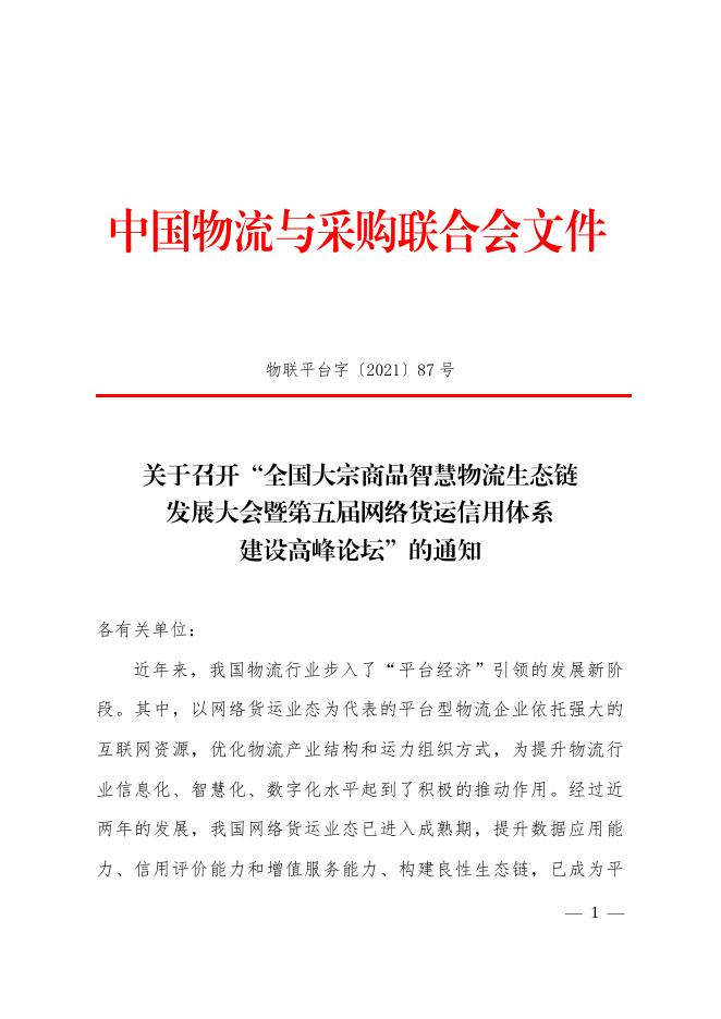 关于召开“全国大宗商品智慧物流生态链发展大会暨第五届网络货运信用体系建设高峰论坛”的通知.pdf