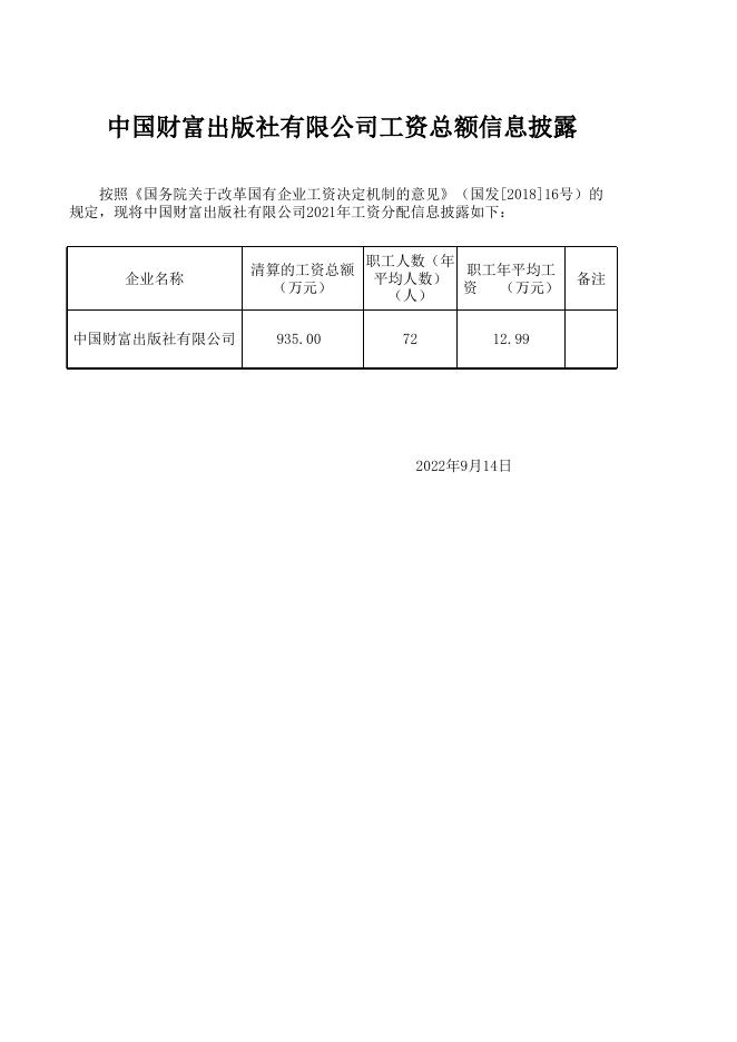 中国财富出版社有限公司2021年工资总额信息披露.xls