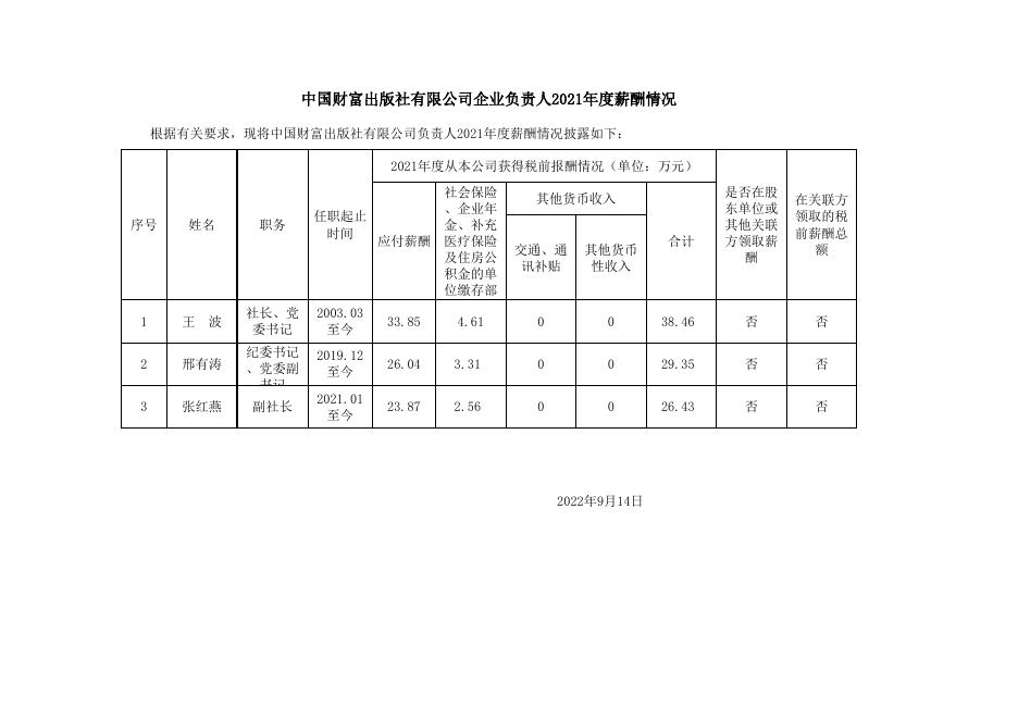 中国财富出版社有限公司企业负责人2021年度薪酬情况.xls