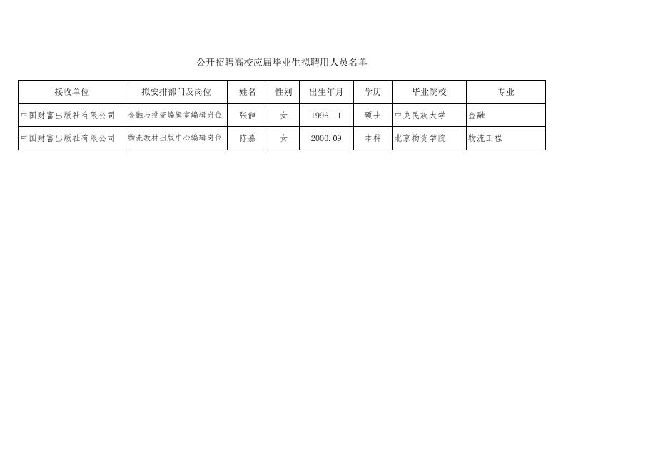 公开招聘高校应聘毕业生拟聘用人员名单.xlsx