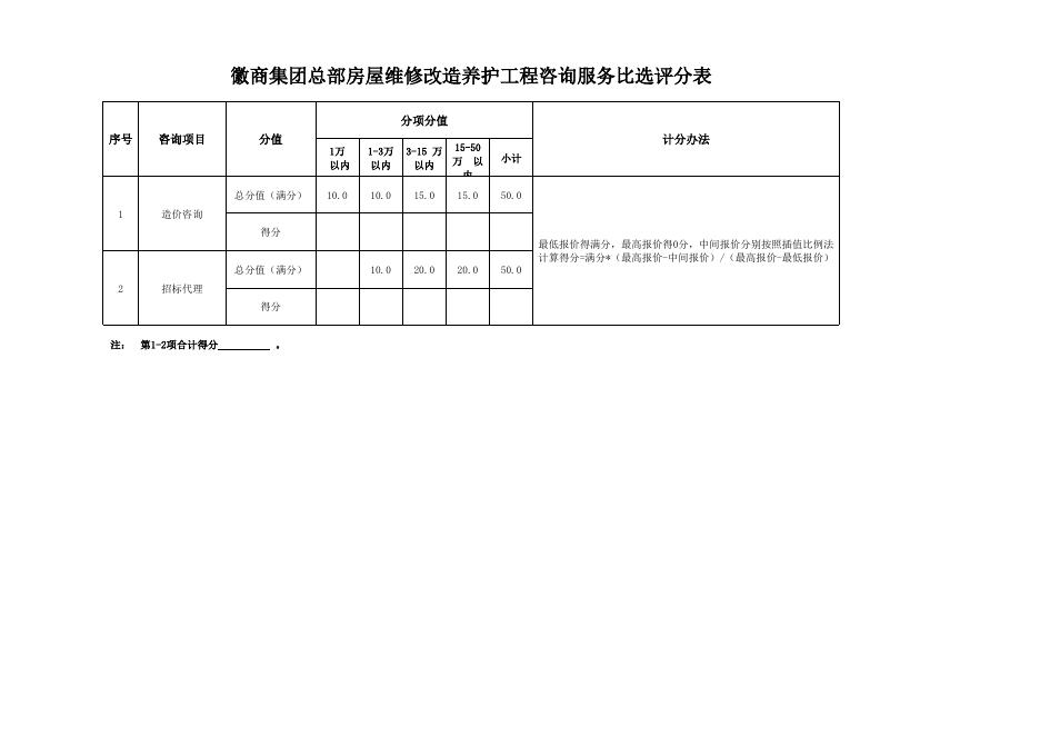 徽商集团总部房屋维修改造养护工程咨询服务比选评分表.xls