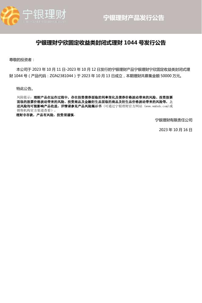 宁银理财宁欣固定收益类封闭式理财1044号发行公告.pdf