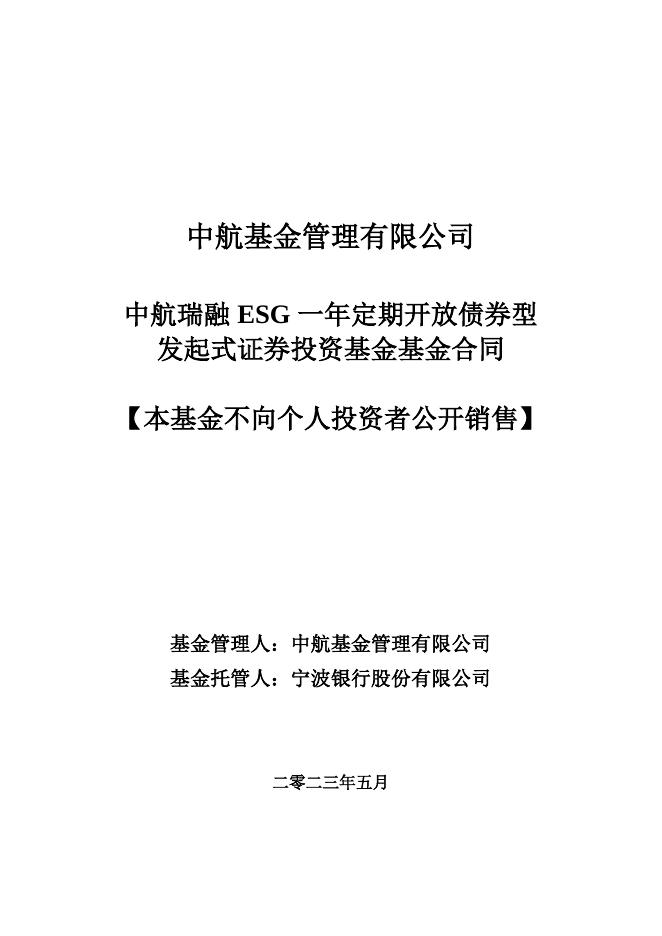 中航瑞融ESG一年定期开放债券型发起式证券投资基金基金合同.pdf