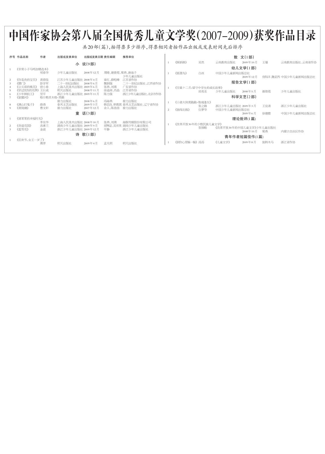 第八届全国优秀儿童文学奖(2007-2009)获奖作品目录.pdf