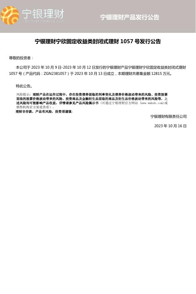 宁银理财宁欣固定收益类封闭式理财1057号发行公告.pdf