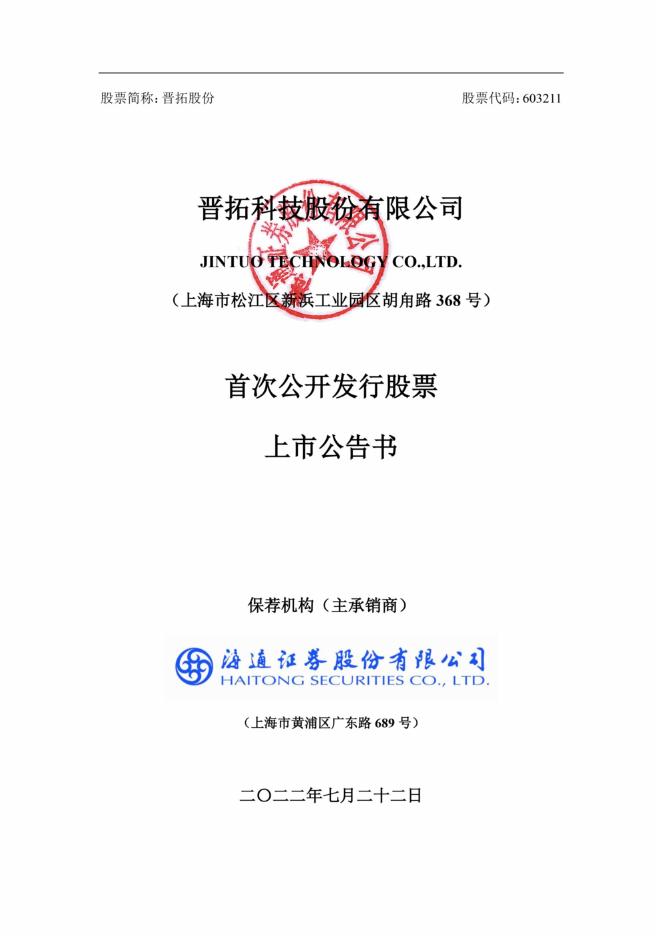 晋拓股份:晋拓股份首次公开发行股票上市公告书.PDF