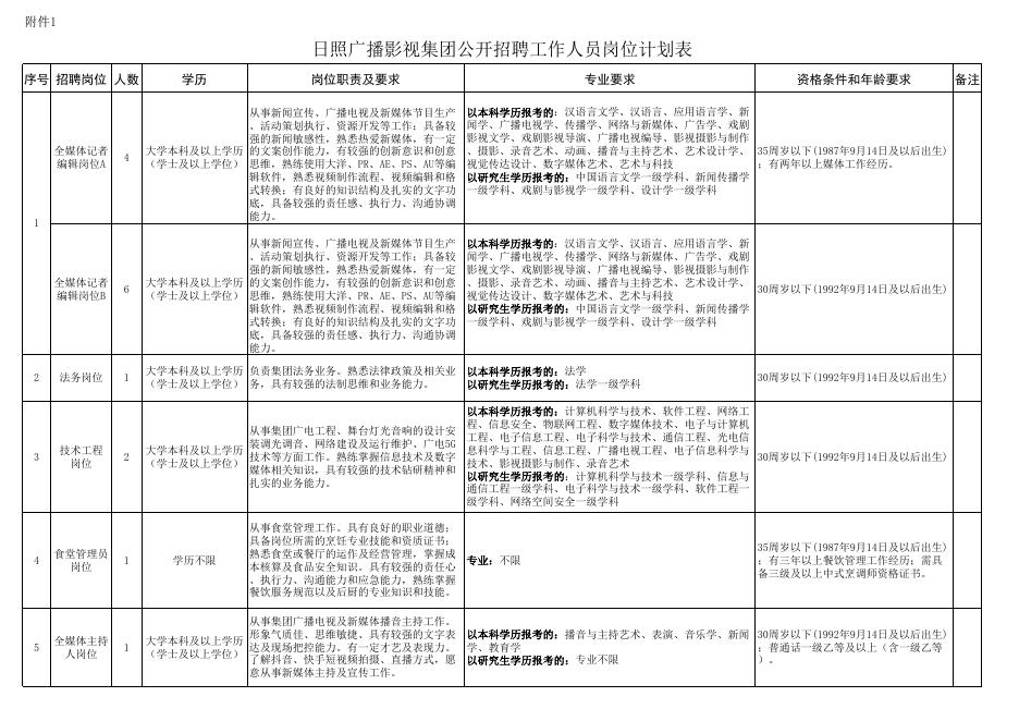 附件1日照广播影视集团公开招聘工作人员岗位计划表.xls