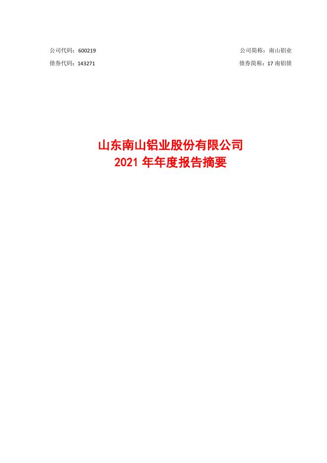 南山铝业:山东南山铝业股份有限公司2021年年度报告摘要.PDF