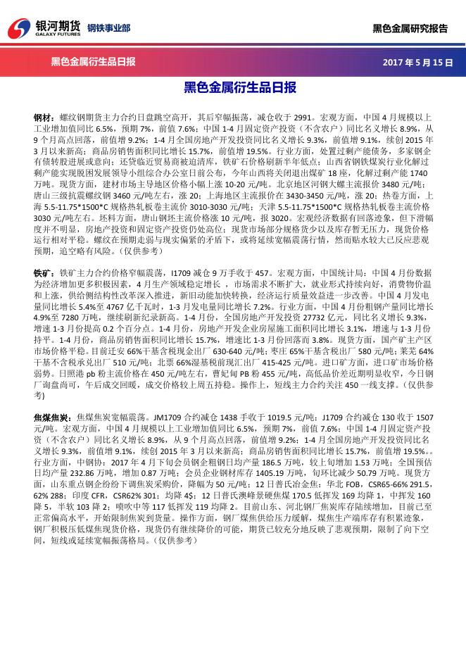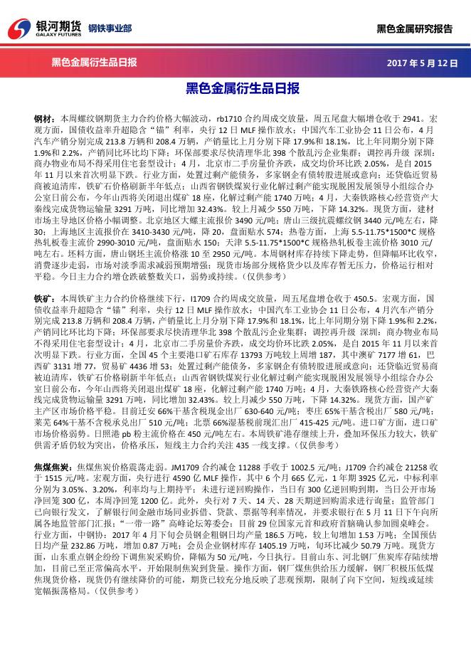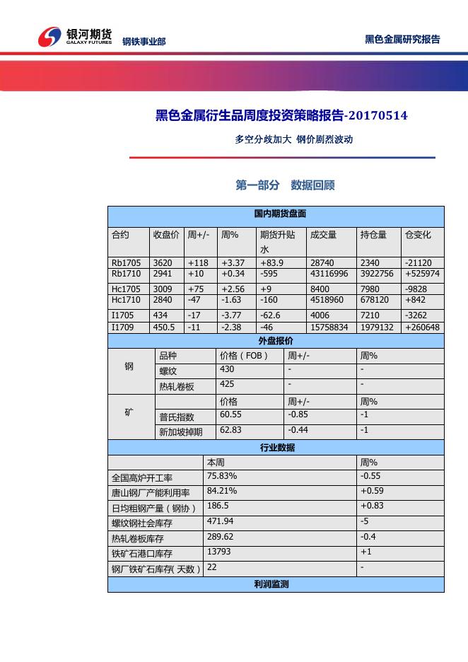 钢铁矿石策略周报—多空分歧加大,钢价剧烈波动20170514 - 周报.pdf