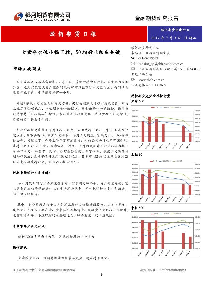 大盘平台位小幅下挫,50指数止跌成关键 - 股指日报.pdf