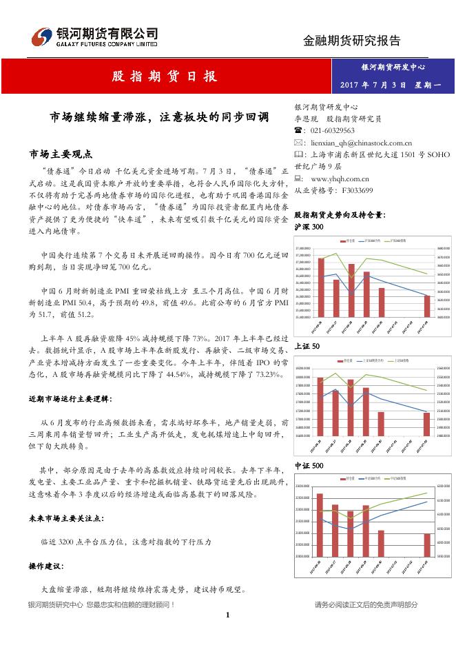 市场继续缩量滞涨,注意板块的同步回调 - 股指日报.pdf